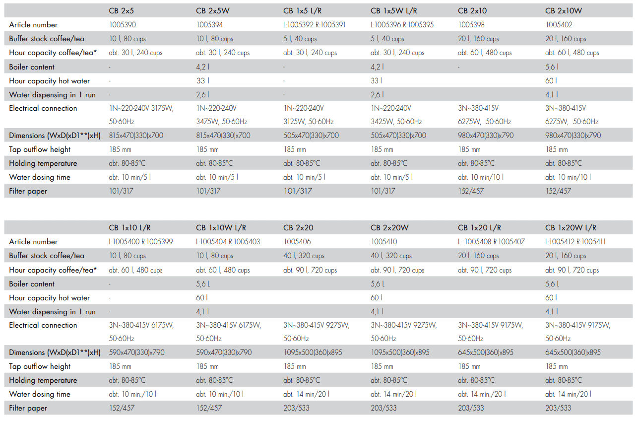 2 x 5L Removable Containers (30L coffee/33L hot water per hour capacity)
