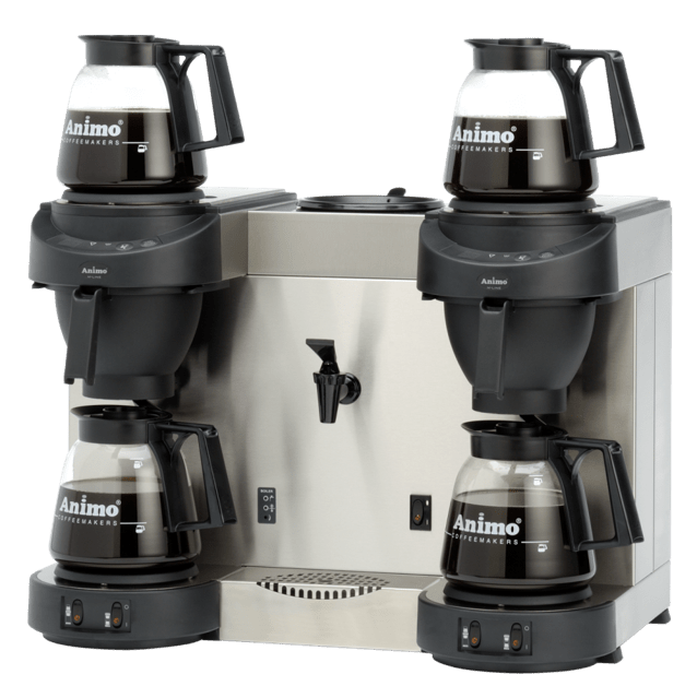 Coffee Brewer with 2 Glass jugs and 4 self-regulating hot plates with water connection